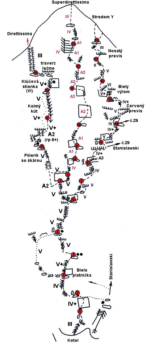 Tímto bych chtěl povzbudit všechny zraněné a nejen ty. Před delší dobou jsem si totiž přidal pod finger board heslo Pavla Pavúka Pochylého: Nemožné je len jedna z možností. A náhodou (?) jsou právě P. Pochylý, J. Unger-Zrust autory prvovýstupu Superdiretissimy z roku 1967.