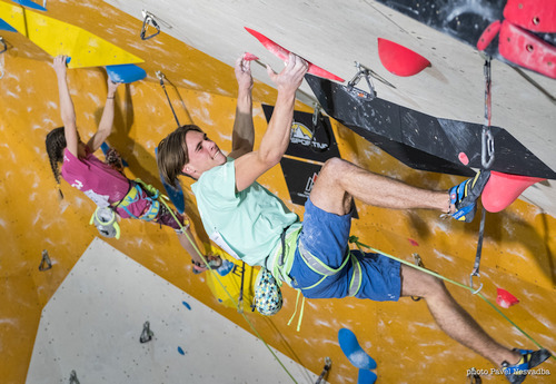 Po ukončení kvalifikace dostali opět prostor stavěči. V „grotě“ vyrostly tři finálovky: 8a+ pro kategorii B, 8a+/8b pro ženy a 8c pro muže. S výjimkou tří nejlepších postupujících mužů a žen lezli finalisté všechny 3 cesty naráz. Bylo tedy stále na co koukat a finále i přes nemalé množství kategorií (a tím pádem i finalistů) pěkně ubíhalo. Cesty obtížnostně gradovaly, top nepadnul žádný, ale občas k tomu nebylo daleko.
