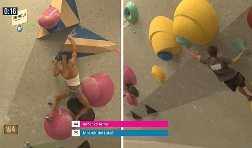 Lukáš Mokroluský a Arina Jurčenko vyhráli včera večer Mistrovství České republiky v boulderingu na stěně Jungle v pražských Letňanech. Druzí byli Jan Štípek a Sára Šimeková (SVK), třetí Darius Naimji a Ema Galeová.