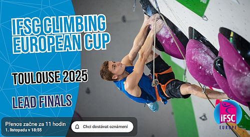 Do finále závodu Evropského poháru v lezení na obtížnost ve francouzském Toulouse postoupili včera večer tři naši: Jan Štípek, Michaela Smetanová a Arina Jurčenko. Finále bude dnes večer a má se přenášet živě na internetu od 18:55.