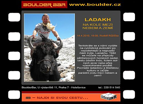 Tentokrát Vám přijde povyprávět Rudolf Růžička o tom, že na kole se nejezdí jen na koupačku, ale docela obstojně se na něm dají projet i malebná pětitisícová sedla a vyprahlé pouště indického severu. Dovedete si představit, co takový běžný domorodec řekne vymóděnému cizinci na kole nebo jak vypadá odpolední cyklo projížďka po poušti? Že ne? Tak si zapište do notýsku, že ve středu od sedmi večer máte být v BB a určitě se toto a mnohé jiné dozvíte! Budeme se na Vaši přítomnost těšit.